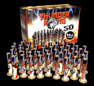 50 Singleshots mit extrem lautem Titanium Blitzknall und silbernen Sternen.